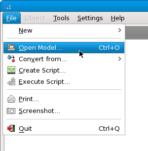 Modelsection of the main window, click the right mouse button to pop up the context menu. SelectOpen Model...: -