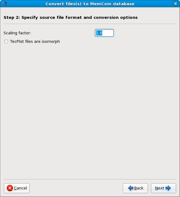 On the third page, a target MemCom database is selected. This is the database which will be created and initialized with the mesh and solution field data from the TecPlot file(s).