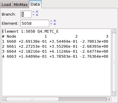 Once the field is loaded, solution data is available. Individual solution data can be accessed, and the minimum and maximum values for all components can be retrieved.