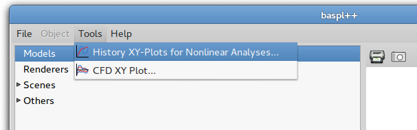 The History XY Plot tool is launched from the baspl++ top-level menu bar by selecting from the menu:
